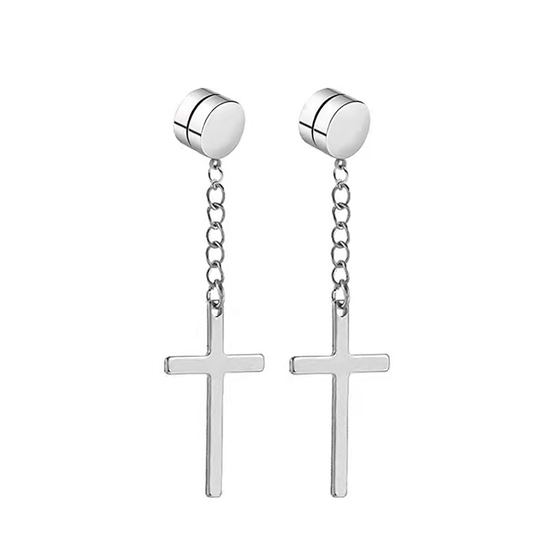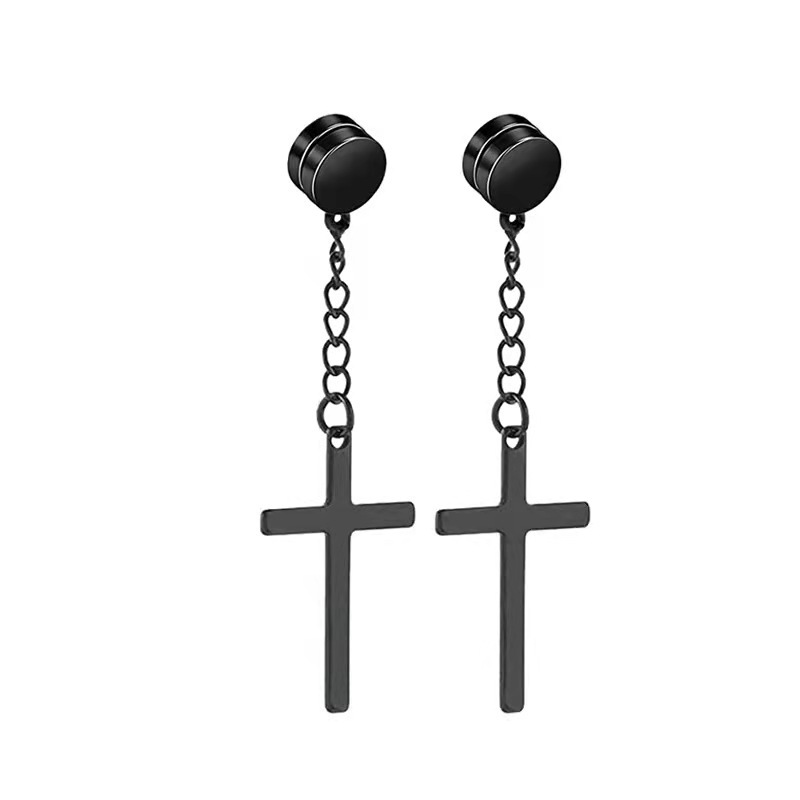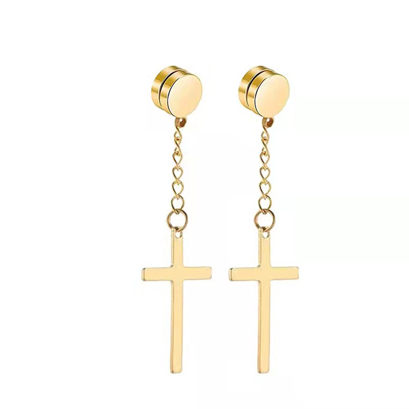 Pendientes de botón con forma de cruz de acero de titanio que absorben el hierro